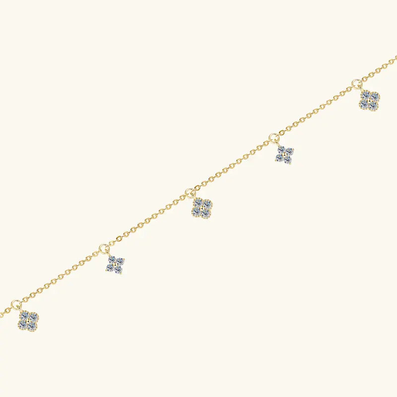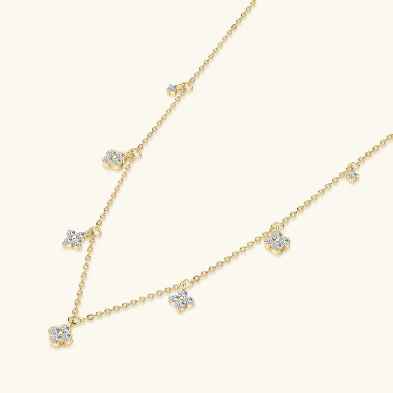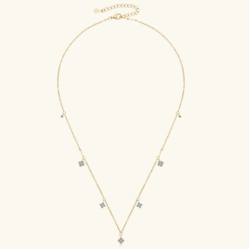 Crafted from 925 sterling silver and plated in luminous 14K gold, it offers both sophistication and lasting shine. The delicate chain is designed to sit gracefully at the collarbone, making it a perfect choice for layering or wearing solo. Ideal for weddings, evening events, or everyday glamour.