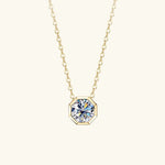 The Valente Moissanite Pendant Necklace redefines timeless sophistication with its bold geometric charm. A brilliant round-cut moissanite—available in 1.0ct (6.5mm) or 2.0ct (8mm)—is securely framed in a sleek octagonal bezel setting that catches light from every angle. Its modern silhouette pairs effortlessly with both casual and evening wear.